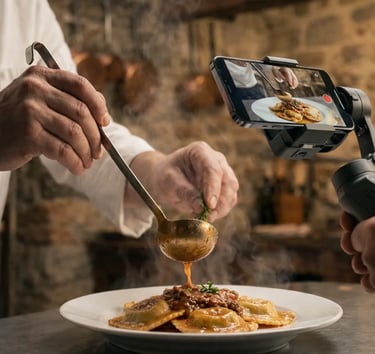 Ti fanno dei video per ore, mentre tu sei impegnato nel lavoro, magari stai spadellando, o stai impastando, piuttosto che sei all'accoglienza dei nuovi clienti, tutto questo è molto "bello" ma senza una strategia strutturata che racconta la tua storia e non ti posiziona come figura di riferimento per il tuo locale, è completamente INUTILE.